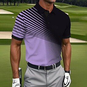 男性用 幾何学的な ライン ポロ スポーツポロシャツ 半袖 ポロシャツ 襟付きシャツ スポーツウェア カジュアル アウトドア アスレイジャー デイリーウェア ポケット 3Dプリント ボタン 夏 ブラック ブルー パープル
