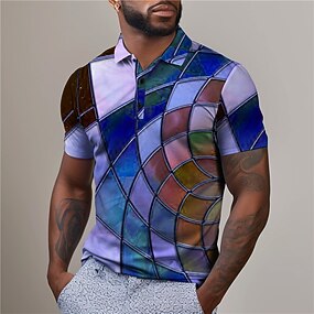 男性用 幾何学模様 ポロシャツ ゴルフシャツ 半袖 ポロシャツ 襟付きシャツ ビジネスカジュアル バケーションウェア フォーマルウェア フェスティバルウェア ボタン 3Dプリント 夏 ブルー パープル グリーン