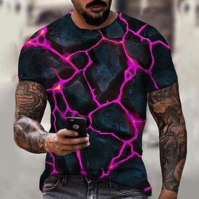 男性用 男女兼用 グラフィック 亀裂 シャツ Tシャツ 半袖 Tシャツ 3Dプリント クルーネック シャツ デザイナー カジュアル 大きくて背が高い 日常 祝日 ブラック イエロー パープル 夏 衣類 S M L XL XXL 3XL 4XL