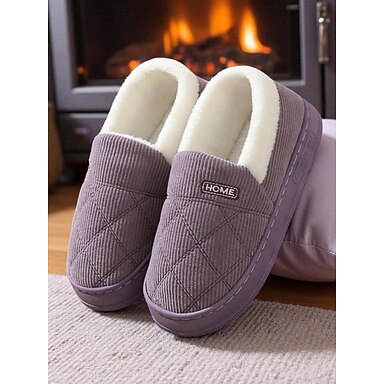 フェイクファーの裏地が付いた女性用の冬用室内スリッパ。暖かく滑りにくい室内履きで、快適な履き心地です。