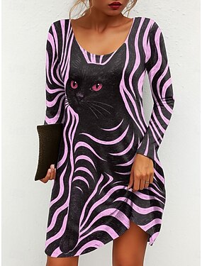 女性のミニドレス クルーネック ロングスリーブ Tシャツドレス ティードレス Aラインドレス カジュアル デイリー お出かけ レギュラーフィット グラフィック アニマル 幾何学 ブルー パープル グリーン ベージュ 秋 冬