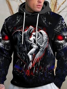 男性用 グラフィック 悪魔 パーカー フーディーズ スウェットシャツ ファッション 日常 長袖 フード付き バケーション スポーツ・アウトドア 祝日 ブラック ブラック プリント フロントポケット 春 & 秋 デザイナー