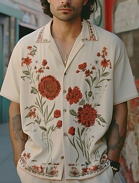 男性用 フラワー グラフィック シャツ 長袖 シャツ 折襟 アウトドア ストリート イエロー ルビーレッド ブルー グリーン ライトブルー プリント 衣類 ファッション ストリートファッション デザイナー カジュアル