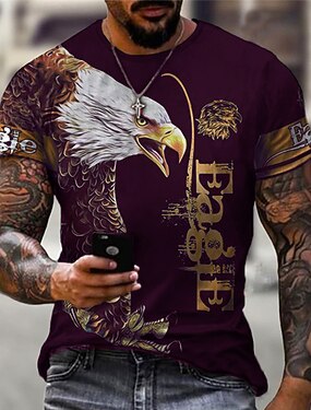 男性用 グラフィック 動物 イーグル Tシャツ ティートップ 半袖 Tシャツ 3Dプリント クルーネック シャツ デザイナー レトリ/ヴィンテージ カジュアル スポーツ・アウトドア 祝日 お出かけ イエロー ルビーレッド ロイヤルブルー 春夏 衣類 S M L XL 2XL 3XL