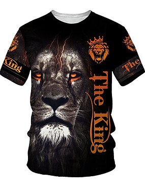 男性用 グラフィック 動物 ライオン 信仰 Tシャツ 半袖 Tシャツ 3Dプリント クルーネック シャツ ヴィンテージ ファッション デザイナー アウトドア 日常 スポーツ ルビーレッド ブルー ブラウン 春夏 衣類 S M L XL 2XL 3XL