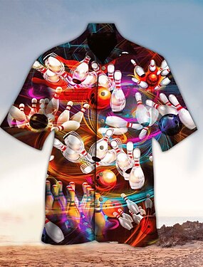 男性用 ボウリング球 シャツ ボーリングシャツ ボタンアップシャツ 半袖 トロピカル風 ファッション ハワイアン アウトドア ビーチ 夏 春 折襟 プリント ボタンダウン イエロー ルビーレッド ブルー グリーン グレー