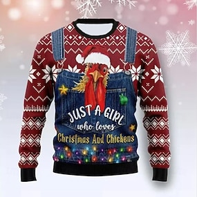 醜いクリスマスセーター 男性用 3Dカトゥーン スノーフレーク柄 プルオーバーセーター ニット クルーネック カジュアル バケーション 日常 祭り 3Dプリント 保温 長袖 春 秋 冬 ルビーレッド ブルー パープル