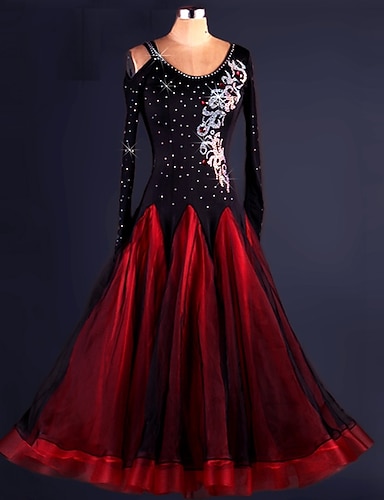ボールルームダンス ドレス クリスタル / ラインストーン 女性用 性能 デイリーウェア 長袖 エラステイン
