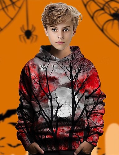 ハロウィーン 男の子 3D 木 パーカー 長袖 春 秋 ファッション ストリートファッション 子供 4〜12年 フード付き アウトドア カジュアル 日常 レギュラー