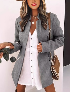 女性用 冬物ジャケット 保温 高通気性 ボタン ポケット カジュアル 純色 バケーション ストリート デイリーウェア お出かけ シングルブレスト レギュラー 折襟 レギュラー 長袖 アウターウェア ブラック カーキ色 グレー 秋 冬