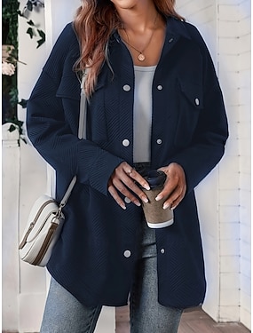 女性用 カジュアルジャケット 快適 高通気性 ポケット ボタン カジュアル 平織り バケーション ストリート カジュアル デイリーウェア シングルブレスト ロング 折襟 ルーズフィット 長袖 アウターウェア 海軍 春 秋