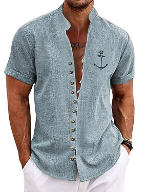 男性用 航海 アンカー シャツ ボタンアップシャツ 半袖 ファッション ストリートファッション デザイナー アウトドア バケーション 日常 夏 春 スタンド プリント ブルー グリーン カーキ色 グレー ライトブルー