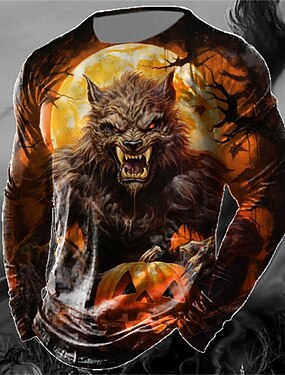 Halloween 男性用 グラフィック 動物 カボチャ Tシャツ 長袖 Tシャツ 3Dプリント クルーネック シャツ ファッション デザイナー カジュアル スポーツ・アウトドア 祝日 お出かけ ブラック イエロー オレンジ 春 & 秋 衣類 S M L XL 2XL 3XL 4XL