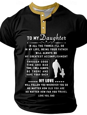 メンズ父娘愛グラフィックヘンリーティー | お父さんの心のこもった「私の娘へ」ショートスリーブTシャツ | 完璧な父の日ギフト