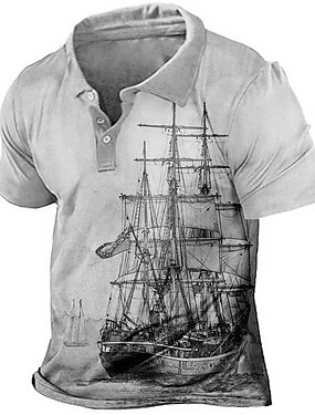 男性用 航海 ポロシャツ ゴルフシャツ 半袖 ポロシャツ 襟付きシャツ ヴィンテージ カジュアル バケーションウェア ボートウェア パーティー衣装 ボタン 3Dプリント イエロー ピンク ブルー