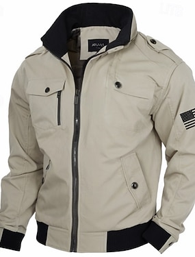 男性用 グラフィック アメリカの米国旗 ジャケット コート ミリタリー 保温 快適 カジュアル スポーツ・アウトドア キャンピング&ハイキング サイドポケット ジップフロント 秋 冬 スタンドカラー 長袖 カーキ色