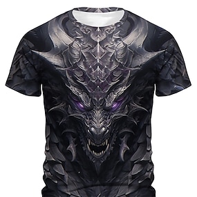 男性用 グラフィック ドラゴン Tシャツ 半袖 Tシャツ 3Dプリント クルーネック シャツ デザイナー レトリ/ヴィンテージ サブカルチャー スポーツ・アウトドア 祝日 お出かけ バーガンディー ブルー パープル 春夏 衣類 S M L XL 2XL 3XL