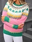 女性用 ニット フェアアイルセーター プルオーバー ヴィンテージ ファッション カジュアル 幾何学模様 リブ クルーネック ニット プリント 長袖 レギュラートップス ニット クリスマス アウトドア 日常 アプリコット 秋 冬