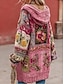女性用 カーディガン 日常 カジュアル フラワー グラフィック リブ フード付き パッチワーク ポケット ボタン 長袖 ロングトップス ニット アウトドア 週末 ピンク 秋 冬