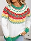 女性用 ニット プルオーバー ストリートファッション カジュアル フラワー リブ クルーネック ニット プリント 長袖 レギュラートップス ニット クリスマス 日常 祝日 ホワイト ピンク 秋 冬