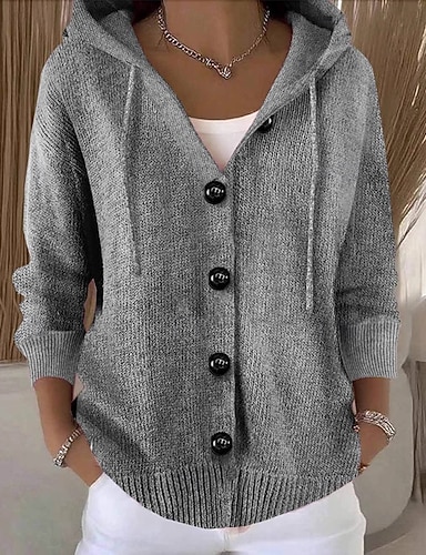 女性用 ニット カーディガン ファッション ストリートファッション カジュアル ピュアカラー リブ フード付き ポケット ボタン ニット 長袖 レギュラートップス ニット アウトドア 日常 週末 ブラック ホワイト 秋 冬