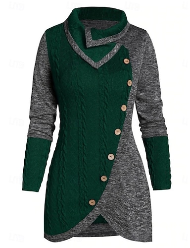 女性用 ニット カジュアル ソフト カラーブロック ケーブル タートルネック ニット 長袖 レギュラートップス ニット アウトドア 日常 週末 ブラック パープル 秋 冬