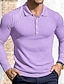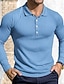男性用 ポロシャツ リブニットトップス ビジネス カジュアル リブ付きポロカラー 長袖 ファッション ベーシック 純色 テクスチャード加工 編み 秋 冬 オールシーズン スリムフィット ライトブルー ホワイト グレー ネイビーブルー パープル ポロシャツ