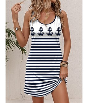 女性用 ミニドレス サンドレス A ラインドレス タンクトップワンピース サマードレス カジュアル バケーション 日常 ビーチ ルーズフィット ハート フラッグ ローズ ノースリーブ クルーネック ホワイト ルビーレッド ロイヤルブルー ブルー 夏 春