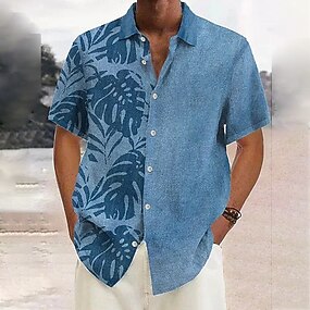 男性用 勾配 葉っぱ シャツ ボタンアップシャツ 半袖 トロピカル風 スポーツ ストリートファッション カジュアル ビーチ 夏 春 折襟 プリント ボタンダウン ルビーレッド ネービーブルー ブルー ダスティブルー グリーン