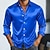 男性用 シャツ サテンシャツ ドレスシャツ カジュアルシャツ ボタンアップシャツ プロムシャツ 平織り フォーマル 結婚式 ライトブルー ホワイト ロイヤルブルー ゴールド 長袖 ラペル オールシーズン 衣類