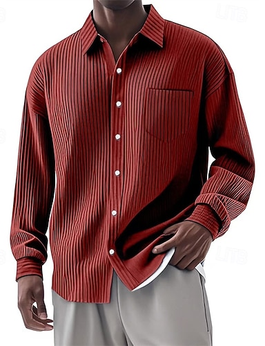 男性用 シャツ サマーシャツ コーデュロイシャツ ボタンアップシャツ ピンク ブルー パープル グリーン 長袖 平織り カラー 折襟 カジュアル 日常 ボタンダウン 衣類 ファッション ストリートファッション クラシック カジュアル