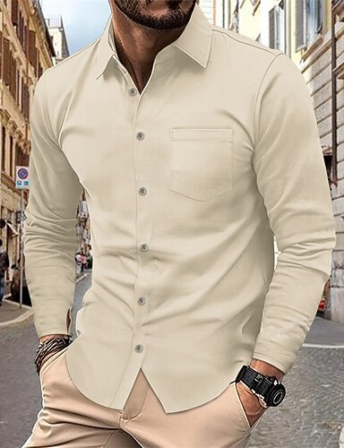 男性用 ワッフルシャツ サマーシャツ カジュアルシャツ ワッフルニットシャツ ホワイト ライトグリーン ピンク ダックグレー アプリコット 長袖 テクスチャード加工 ファッション 折襟 バケーション 祝日 衣類 コットン ファッション オフィス カジュアル 快適
