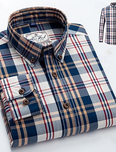 男性用 シャツ カジュアルシャツ ボタンアップシャツ チェックシャツ ネイビーブルー ブルー ブラウン グリーン ダックグレー 長袖 グラフィック チェック 折襟 バケーション ストリート プリント 衣類 スタイリッシュ 現代コンテンポラリー カジュアル
