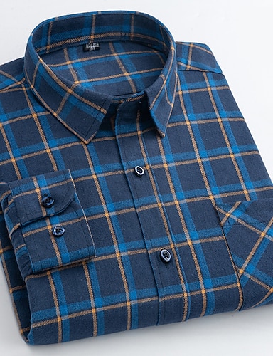 男性用 シャツ カジュアルシャツ チェックシャツ ボタンアップシャツ 格子柄 アウトドア デイリーウェア ネイビーブルー ロイヤルブルー ブルー スカイブルー 長袖 ラペル 秋冬 衣類 フロントポケット
