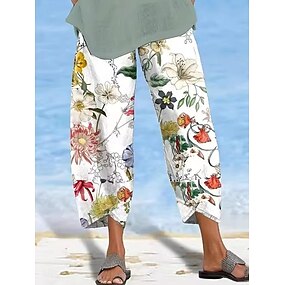 女性用 チノパン 旅行度假风 ヴィンテージ ふくらはぎ丈 ハイウエスト フラワー ポケット 弾性ウエストバンド 快適 ソフト マイクロエラスティック アウトドア バケーション ホワイト 夏 ルーズフィット