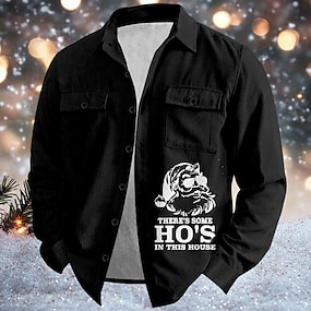 クリスマス 男性用 サンタクロース コーデュロイシャツ シャツジャケット 長袖 ヴィンテージ カジュアル アウトドア イベント/パーティー 日常着 秋冬 折襟 襟付きシャツ ボタン 3Dプリント 2ポケット 1個 バイオレット ブラック ルビーレッド ブルー グリーン