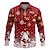 クリスマス 男性用 サンタクロース シャツ ボタンアップシャツ 長袖 カジュアル パーティーイブニングウェア 日常 秋 冬 春夏 シャツカラー ボタンアップ 3Dプリント ルビーレッド