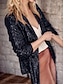 女性用 カジュアルジャケット 快適 高通気性 スパンコール オープンフロント エレガント カジュアル スパンコール バケーション パーティー ストリート デイリーウェア オープンフロント レギュラー 折襟 レギュラー 長袖 アウターウェア シルバー ブラック シャンパン 春 秋