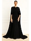 シース クリスマスドレス イブニングガウン エレガント ケープドレス フォーマル 秋 スウィープ/ブラシトレイン ロングスリーブ カウルネック ストレッチファブリック ボタン付き スリット インプレッション ストレッチドレス