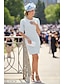 タイト/コラム ショート ミニ 卒業式ドレス パーティードレス 二次会ドレス / カクテルドレス ウェディングドレス ブライダルシャワードレス エレガント ホワイトドレス ノースリーブ クルーネック フォーマル 誕生日 サテン とともに リボン クリスタル装飾