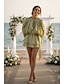 シーススパンコールカクテルドレス パーティードレス 結婚式ゲスト ショート/ミニ ロングスリーブ ジュエルネック プレーンカラー