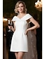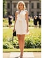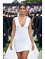 タイト/コラム ショート ミニ 白いドレス 小さな白いドレス エレガント オープンバック ノースリーブ Vネック 結婚式 卒業 ストレッチ生地 バックレス とともに フリル ソリッドカラー