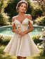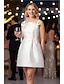 ボールガウン ショート ミニ 白いドレス 小さな白いドレス エレガント ノースリーブ オフショルダー 結婚式 サテン とともに ソリッドカラー
