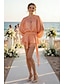 Aラインカクテルドレス ドレス ウェディングゲスト ホームカミング 短丈 ミニ 長袖 Vネック スパンデックス プリーツ 純色 感動的なドレス