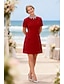 Aライン ショート ミニ パーティードレス ウェディングゲストドレス ウェディングゲストドレス 日常 半袖 クルーネック フォーマル 結婚式のゲスト とともに プリーツ ラッフル