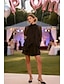 ツーピース Aライン ショート ミニ ウェディングゲストドレス ウェディングゲストドレス エレガント 日常 長袖 クルーネック プロムドレス フォーマル とともに プリーツ フリル