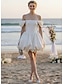 エンゲージメント リトル グラデュエーション ホワイトドレス ウェディングドレス シース コラム オフショルダー 長袖 ショート ミニ サテン ブライダルガウン ソリッドカラー付き