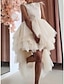Aライン アシメントリー ショート ミニ ヴィンテージドレス オーバースカートドレス ウェディングゲストドレス エレガント 長袖 スクープネック 結婚式 バレンタイン とともに ラッフル