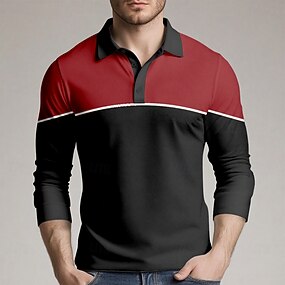 男性用 カラーブロック 水平ストリップ ラグビーポロ 長袖 ポロシャツ 襟付きシャツ カジュアル 学校 アウトドア アスレイジャー 3Dプリント 春 秋 冬 イエロー ルビーレッド ブルー