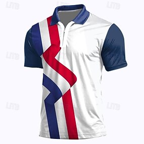 男性用 愛国 スポーツポロシャツ ゴルフシャツ 半袖 ポロシャツ 襟付きシャツ カジュアル スポーツウェア バケーションウェア 3Dプリント クォータージップポロ 春夏 ホワイト ブルー